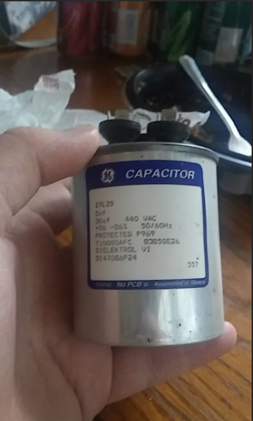 Here is my capacitor -https://i.gyazo.com/fe19a0d3fd11ec7a46e4261469e0529b.png (it's a GE)